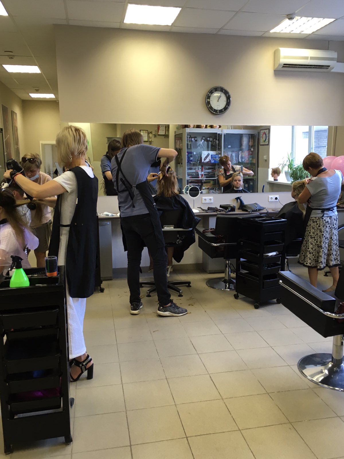 Но все прошло отлично! Весь день шли клиенты на стрижки, окрашивание, экспресс – уход за волосами, маникюр. Все процедуры можно было получить со скидкой 50 % . Кроме этого посетителей ознакомили с особенностями ухода за волосами, с продукцией итальянской компании Kleral System , которая в широком ассортименте представлена в Центре. Наши студенты не присели ни на минуту, работая с клиентами. Такие Дни клиента мы будем проводить и в дальнейшем! Следите за нашими новостями.