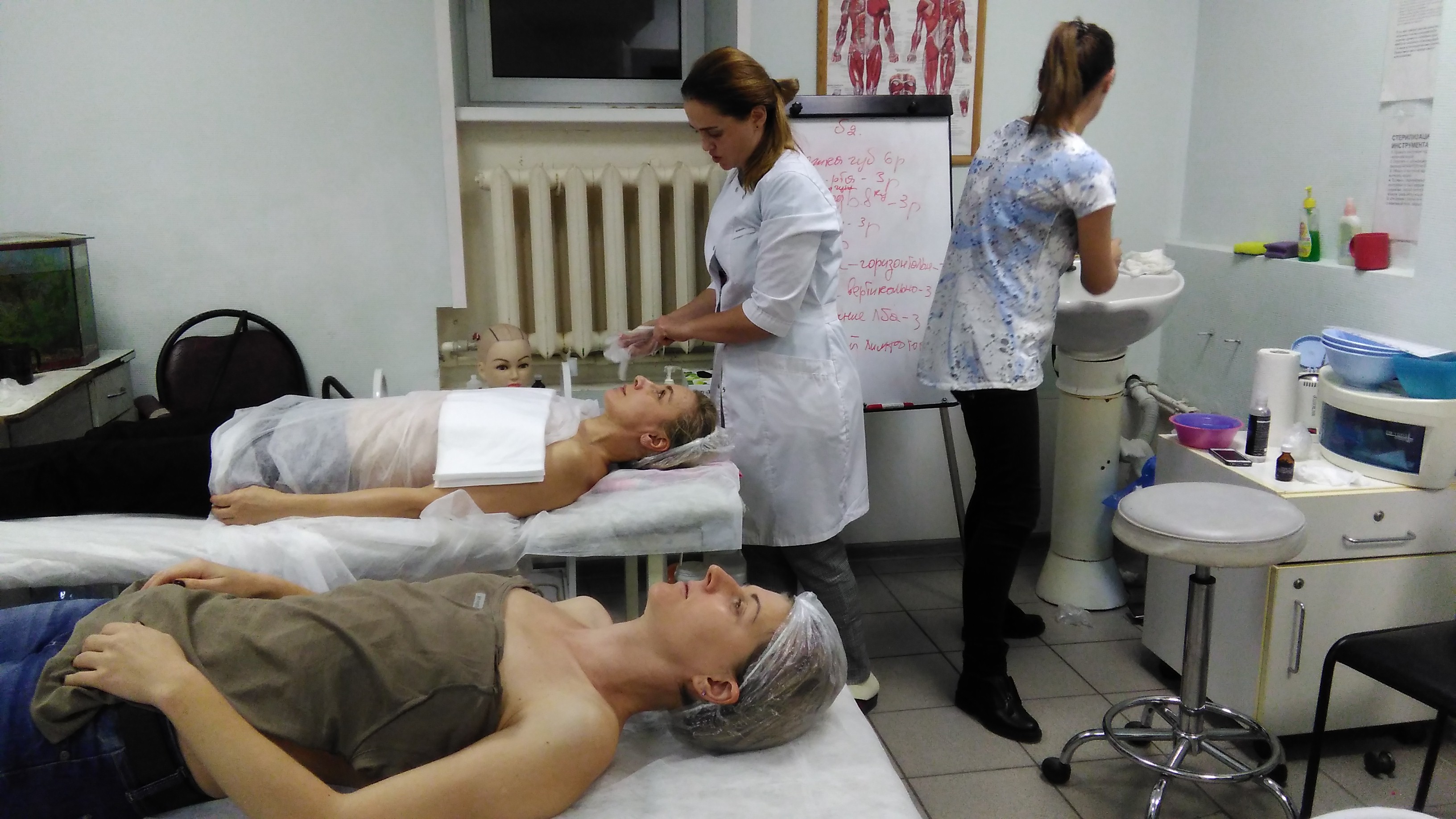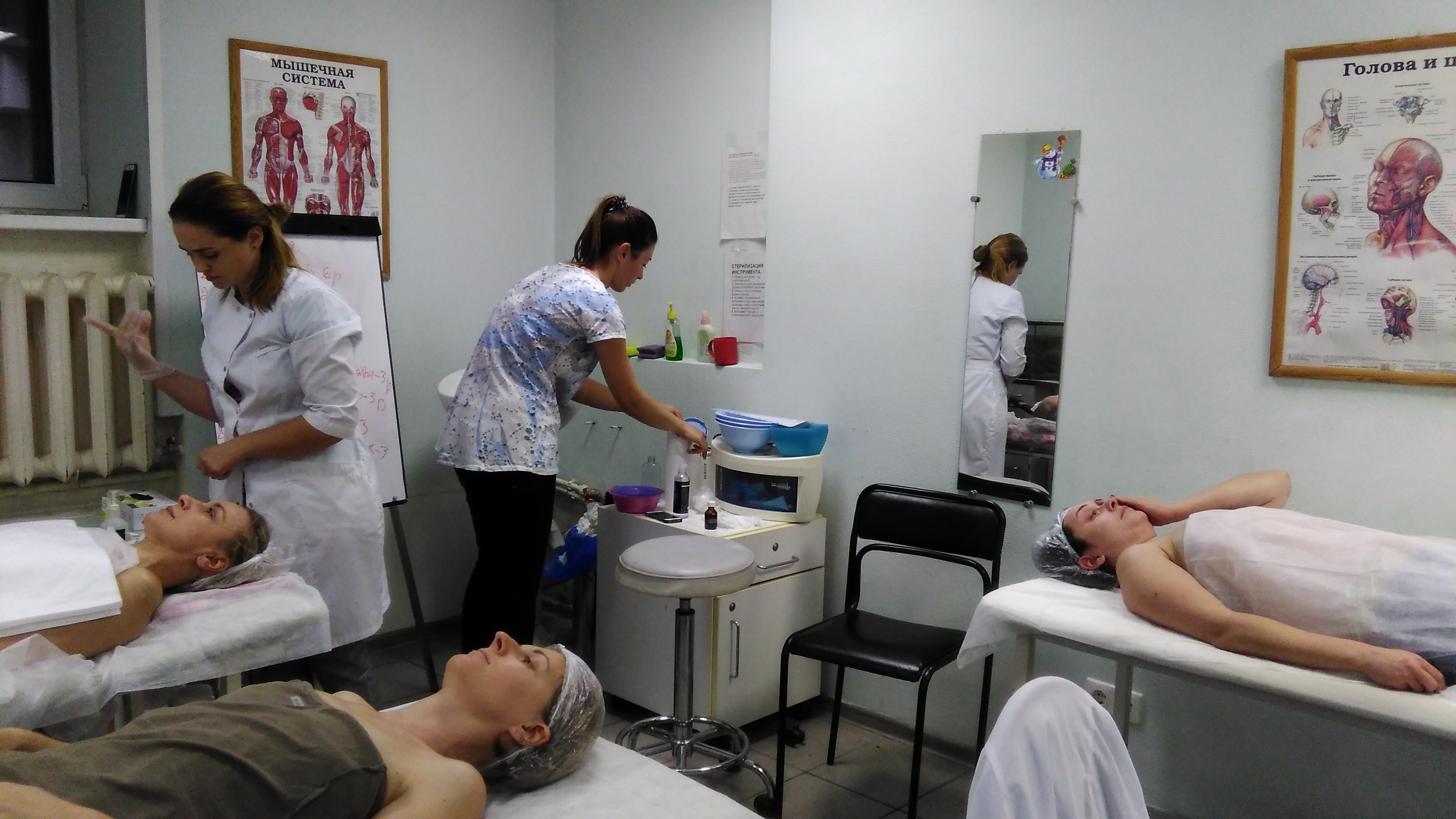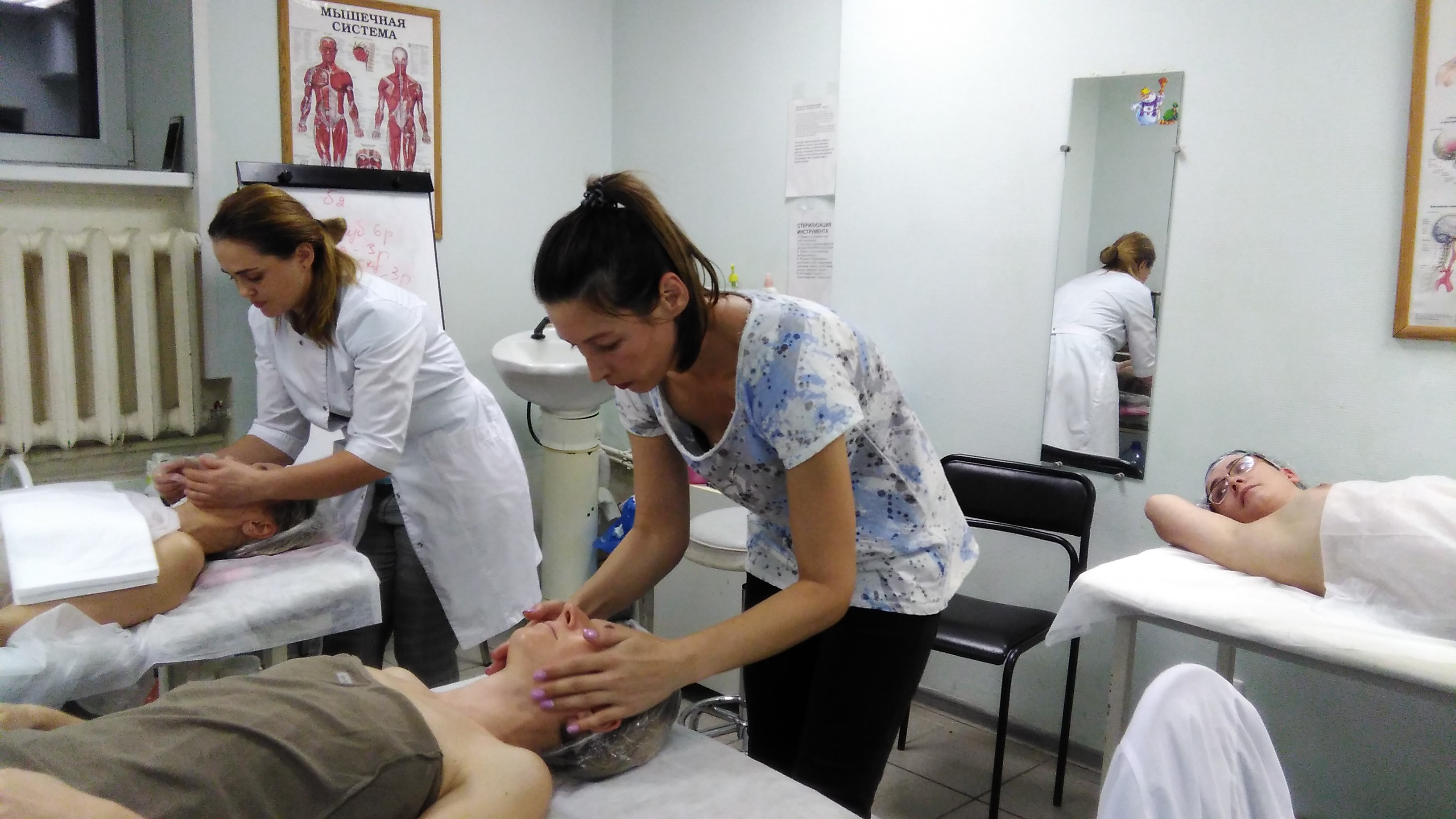Слушатели отрабатывали миофасцальный массаж, моделирование контура лица и другие техники курса.