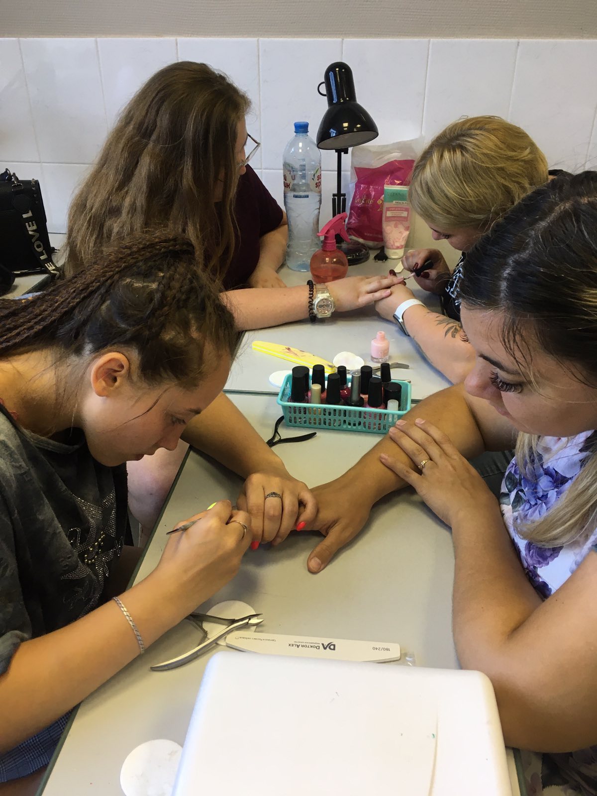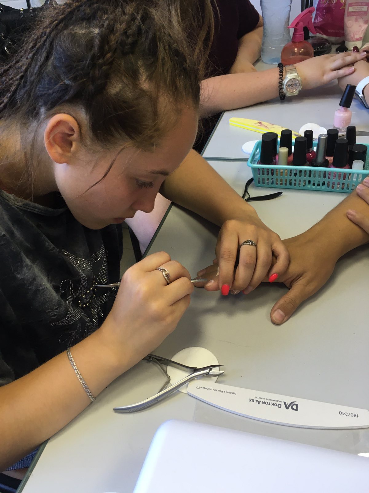 Вот и сейчас группа будущих профессионалов осваивает азы маникюрного искусства! С усердием они осваивают различные техники маникюра, а также дизайна. Все инструменты и материалы предоставляюся Учебным центром.